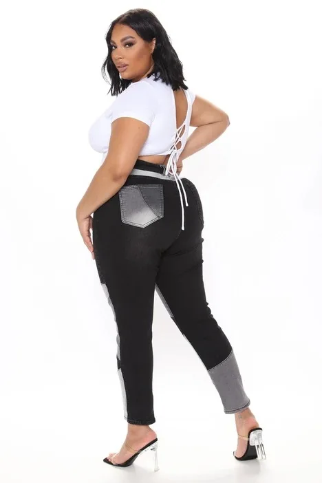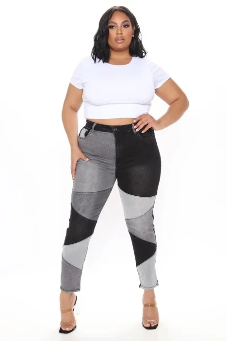 2021 New Fashion Woman Stitching High Waist Jeans High Stretch Denim Pencil Pants Street Trendy Trousers S-3XL Drop shipping